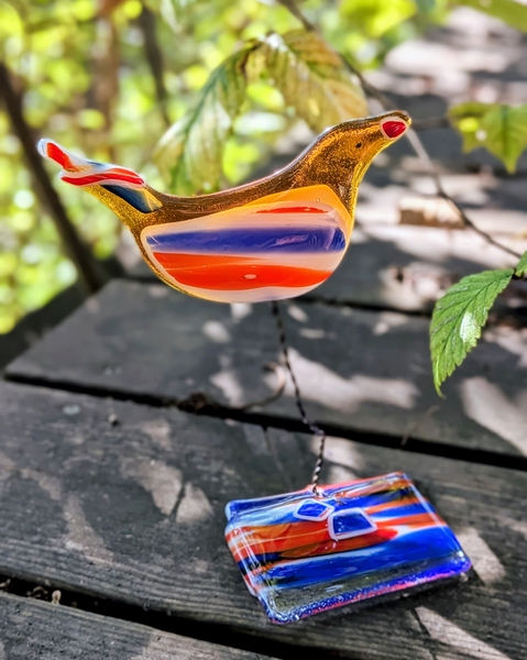 Kergelt õõtsuv linnuke klaasist alusel.