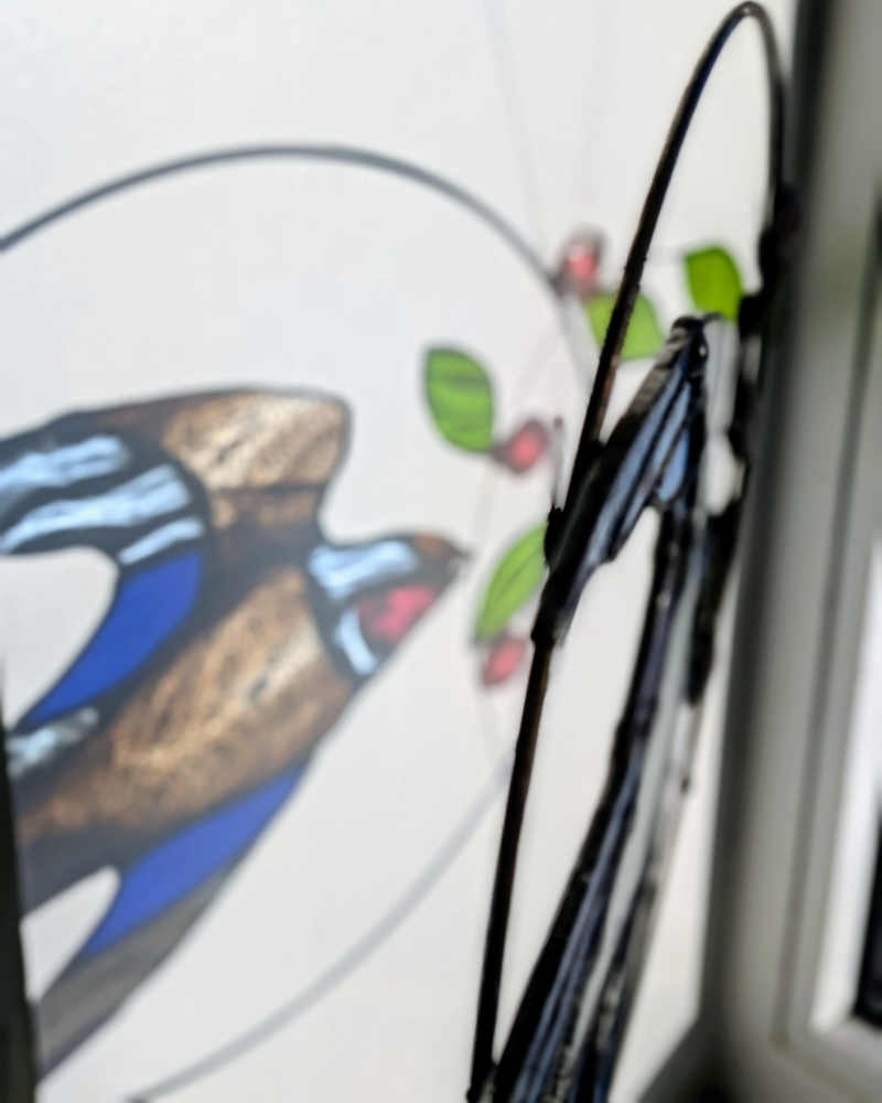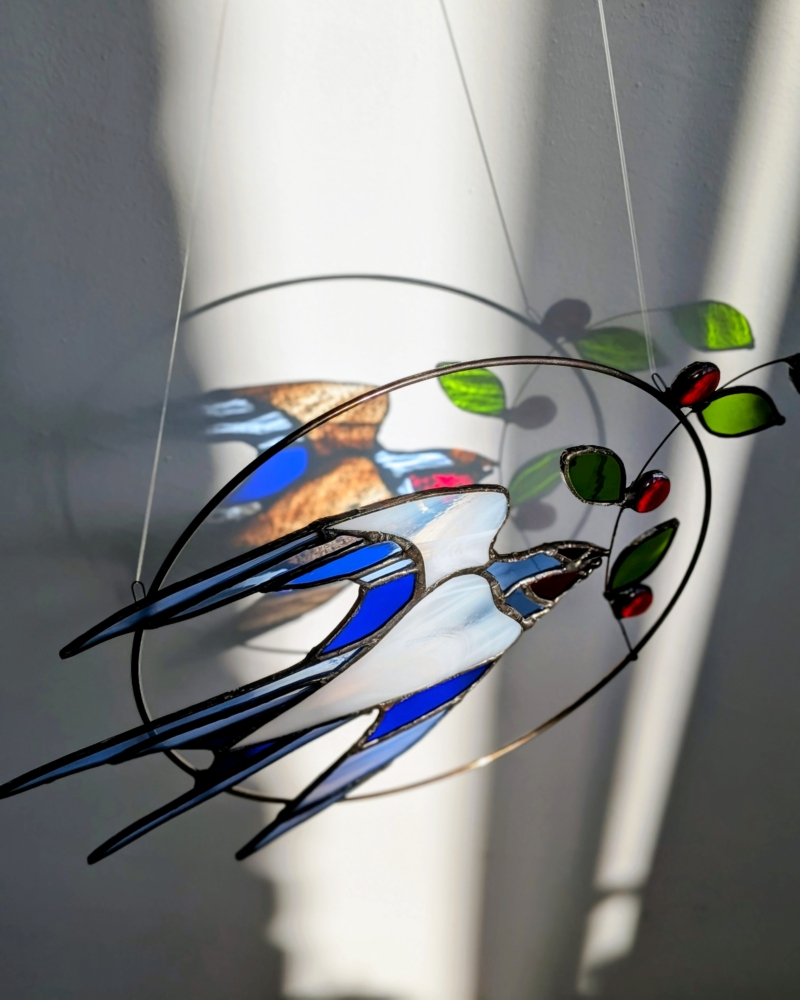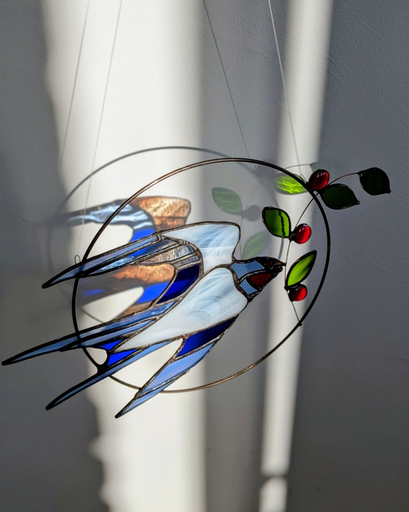 Vitraaž ”Pääsuke marja oksaga” Rõnga Ø25cm