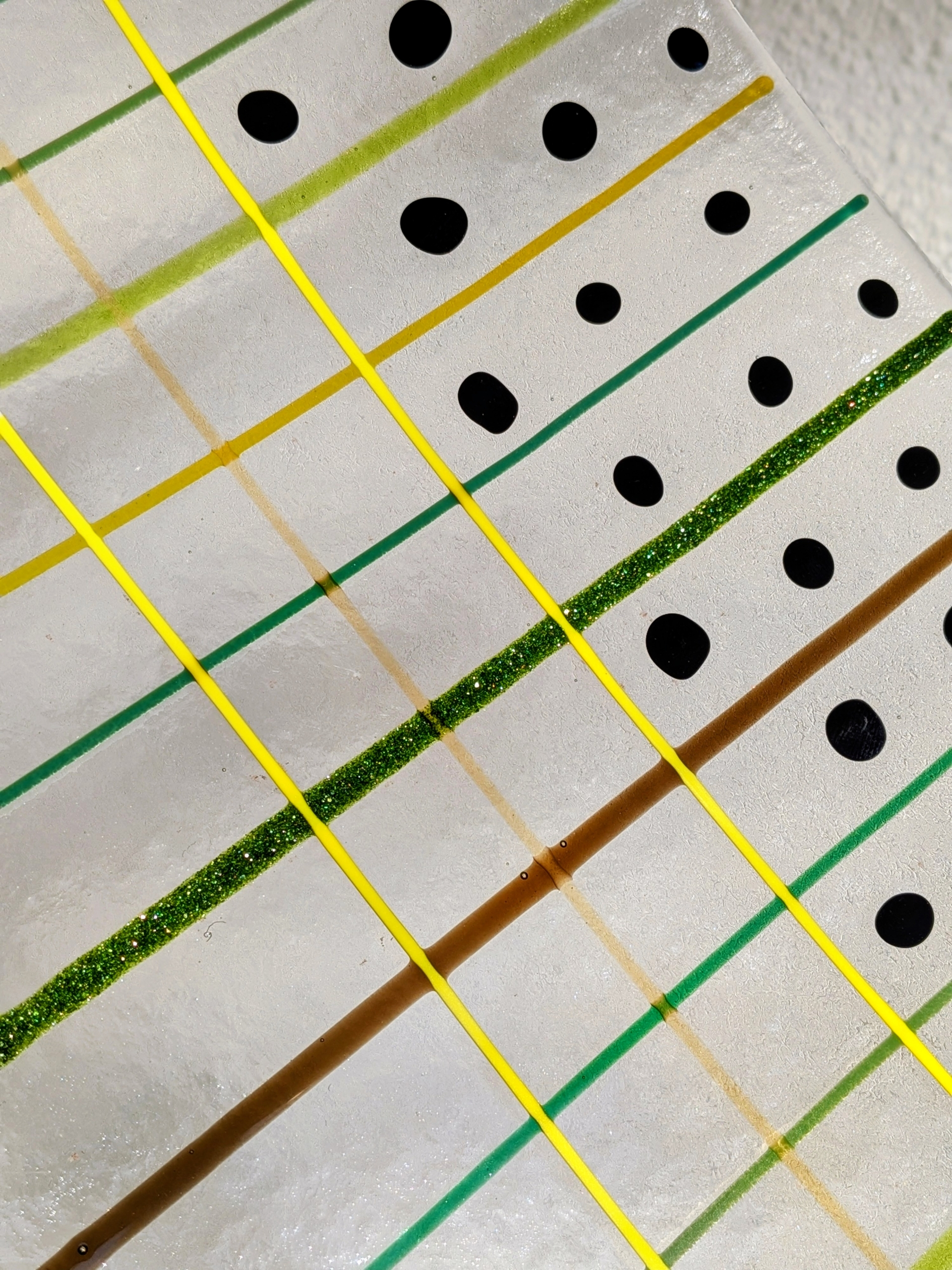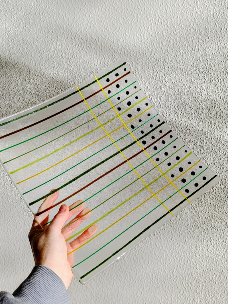 TRIIBU VAAGEN Soliidne ja kerge lihtsa olemisega triibuline vaagen lauale. Edevust lisavad sädelevad rohelised triibud ja rõõmsameelsust väiksed mustad mummud.