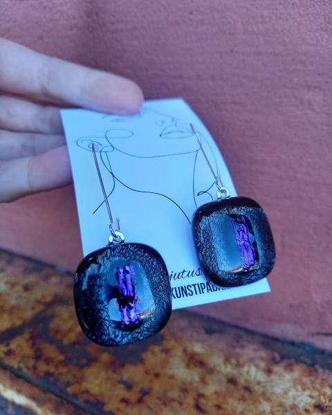Väike klaasikunst °•○● Natuke suuremad rippuvad hõbehalli helgiga kõrvarõngad, sädeleva lillaga keskel Suurus ~2,3cm