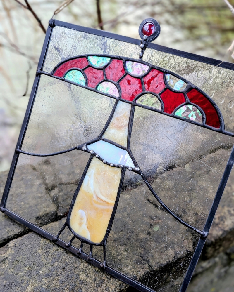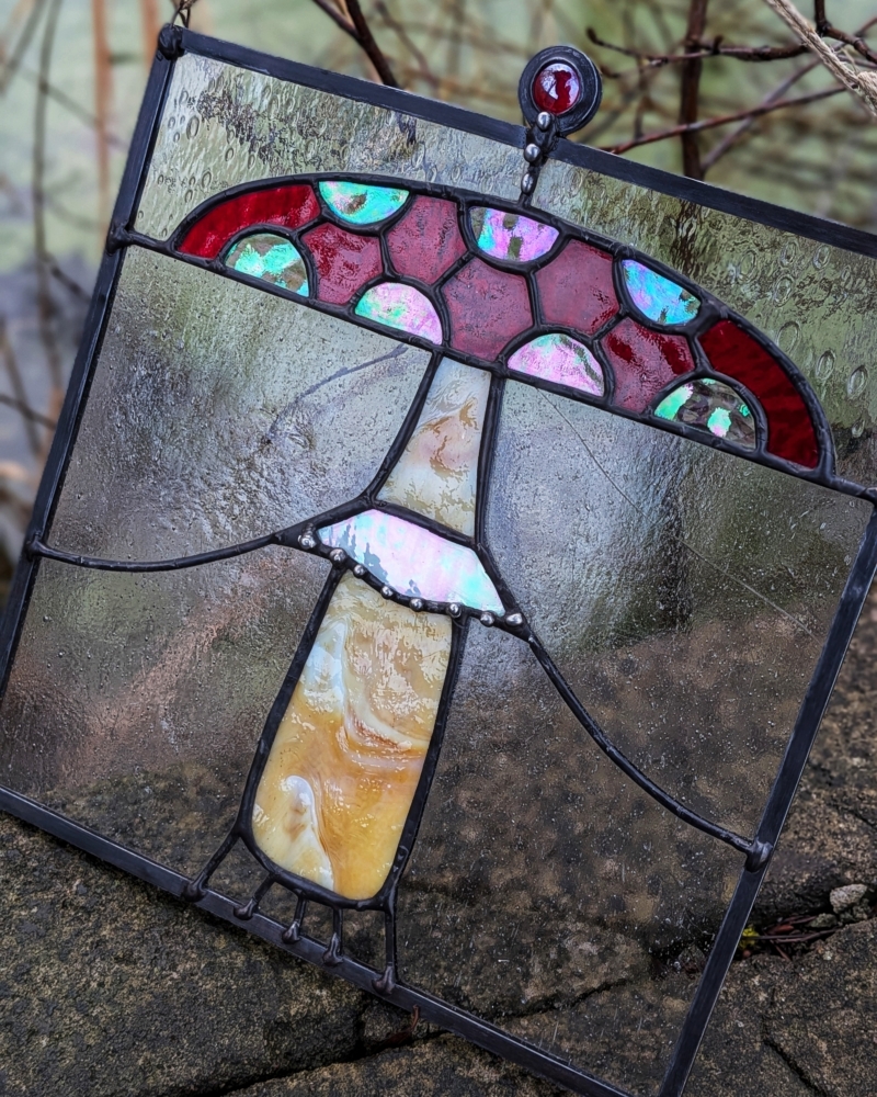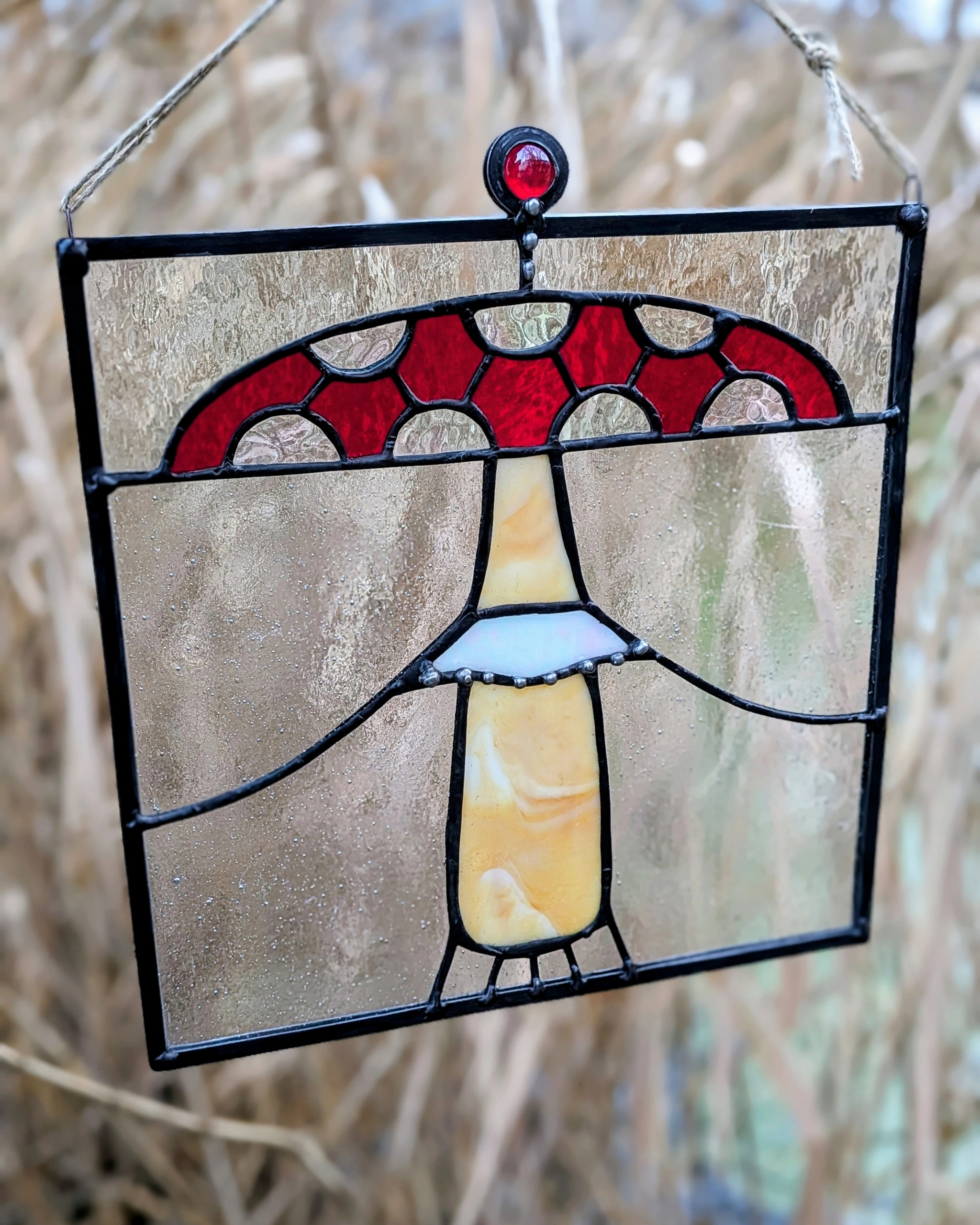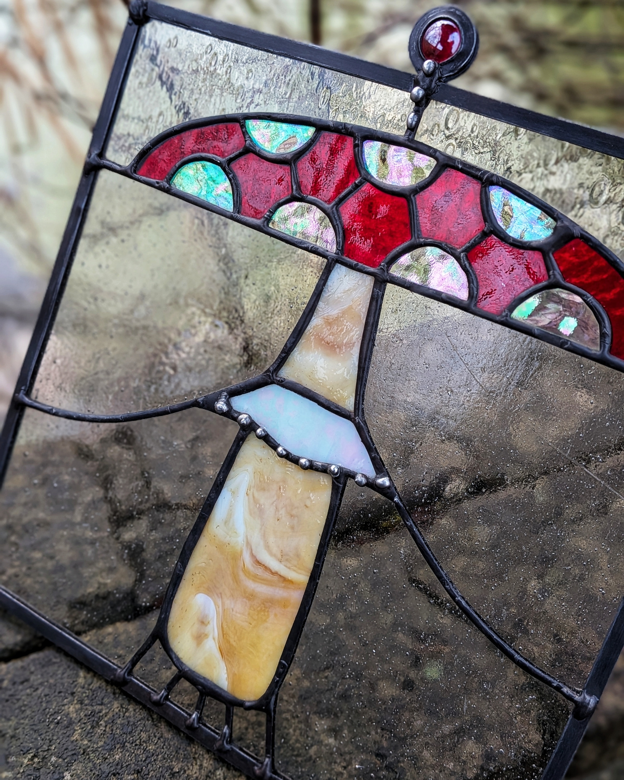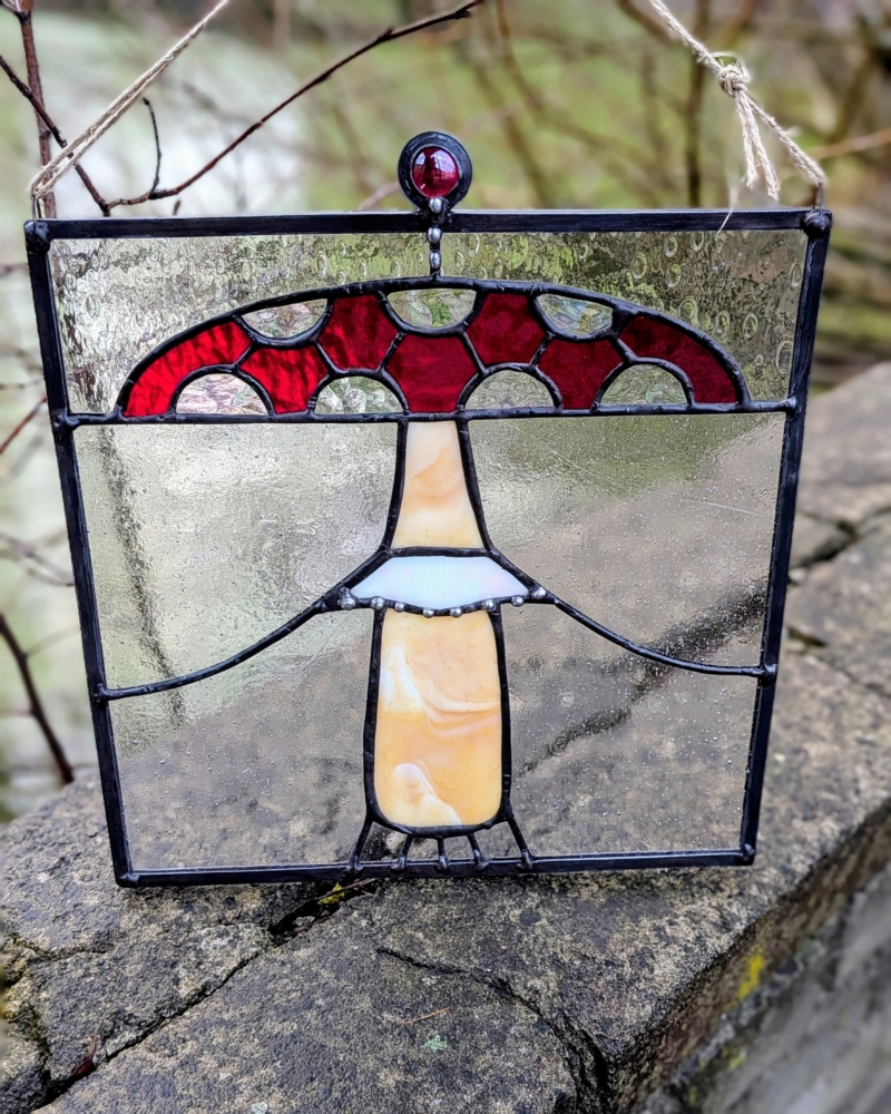 KÕIGE ILUSAM ehk UHKE SEEN METSAS Ilus särav vitraaž köögiaknale. Päikselisel päeval toob tuppa mustreid ja punast värvisära. Suurus: ~25,5×25,5