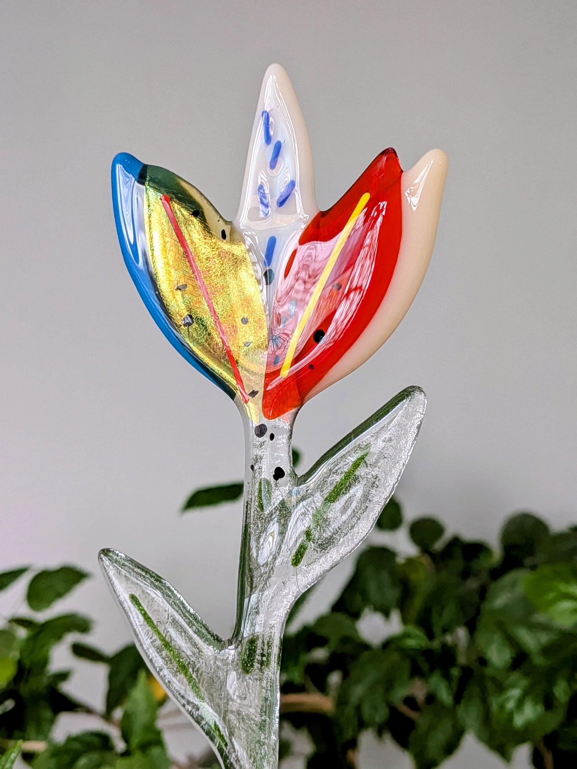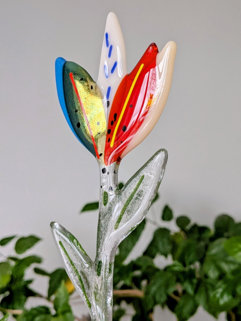 Kaunis klaasist lill, mille õitsemine ei lakka eal. ilusad säravad värvitoonid, sekka üks haruldane kuldne õis.
